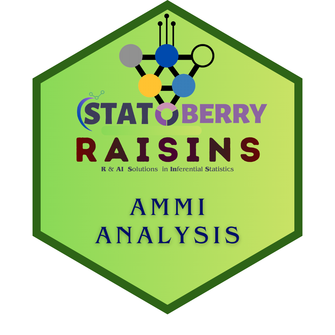 Discover R A I S I N S (R & AI Solutions in INferential Statistics) - your ultimate tool for mastering AMMI Analysis! Effortlessly upload your data and unlock instant, polished tables tailored for your analysis. Dive deeper with stunning advanced plots and automated table interpretations. Transform complex stats into clear, actionable results with ease!